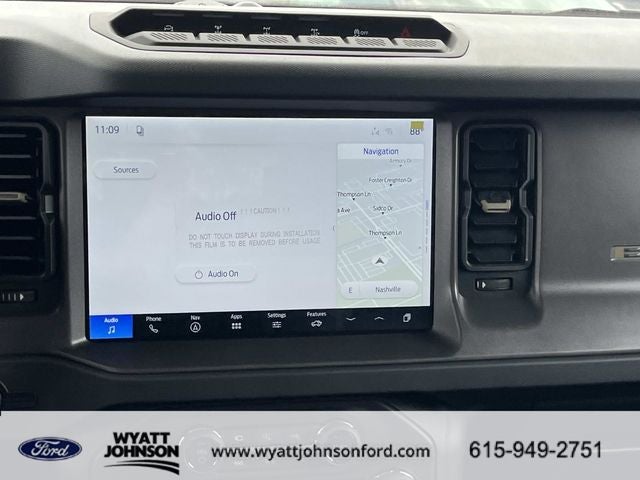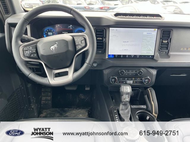 Check Out All These Options: Equipment Group 334A Lux Package (2-Door Intelligent Access with Lock/Unlock, 360-Degree Camera, Adaptive Cruise Control, Ambient Footwell Lighting, Connected Navigation, Driver and Front Passenger Illuminated Sliding Visor Vanity Mirrors, Dual Smart Charging USB Ports, Dual-Zone Electronic Automatic Temperature Control, Evasive Steering Assist, Front Parking Sensors, Front Row Heated Seats, Heated Steering Wheel, Marine Grade Vinyl Heated Bucket Seats, Pro Power Onboard - 400W, Rear Parking Sensors, Sideview Mirrors, and Wheels: 17 Carbonized Gray-Painted Aluminum), Ford Connectivity Package (1-Year Included), Ford Connectivity Package (one-Time Purchase - 7 Years), Sasquatch Package (Front Stabilizer Disconnect, High Clearance Suspension, and Position-Sensitive Bilstein Shock Absorbers), 4-Wheel Disc Brakes, 7 Speakers, ABS brakes, Air Conditioning, Alloy wheels, AM/FM radio: SiriusXM with 360L, AM/FM Stereo, Auto High-Beam Headlamps, Auto High-beam Headlights, Auto-dimming Rear-View mirror, BLIS Blind Spot Information System, Brake assist, Compass, Delay-off headlights, Driver door bin, Driver vanity mirror, Dual front impact airbags, Dual front side impact airbags, Electronic Stability Control, Emergency communication system: 911 Assist, Exterior Parking Camera Rear, Ford Performance Heavy-Duty Modular Front Bumper, Front anti-roll bar, Front Bucket Seats, Front Center Armrest, Front fog lights, Front License Plate Bracket, Front reading lights, Front wheel independent suspension, Fully automatic headlights, Hard Top Sound Deadening Headliner, Heated door mirrors, Heated front seats, Illuminated entry, Integrated roll-over protection, Lane-Keeping System, Leather Shift Knob, Leather-Trimmed/Vinyl Bucket Seats, Low tire pressure warning, Occupant sensing airbag, Outside temperature display, Overhead airbag, Overhead console, Painted Hard Top, Panic alarm, Passenger door bin, Passenger vanity mirror, Power door mirrors, Power steering, Power windows, Pre-Collision Assist with Automatic Emergency Braking, Radio data system, Rear-View Camera, Rear-Window Defroster and Washer, Remote keyless entry, Security system, SiriusXM with 360L, Speed control, Split folding rear seat, Steering wheel mounted audio controls, SYNC 4, Tachometer, Telescoping steering wheel, Tilt steering wheel, Traction control, Trip computer, Variably intermittent wipers, and Voltmeter.