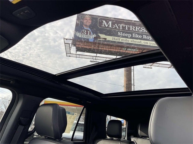 Check Out All These Options: Driver's Package (Radio: B&O Play Unleashed), Equipment Group 600A Standard Package (2nd Row Power-Folding Captain's Chairs, 3.73 Axle Ratio, BlueCruise Equipped (90-Day Trial), Ford Digital Experience, and Wheels: 20 x 8.5 Ebony Bright Machined Aluminum), Ford Connectivity Package (1-Time Purchase), Ford Connectivity Package (1-Year Included), Stealth Appearance Package (Black Belt Molding, Black Roof Rails, Carbon Black Front Bumper/Fascia, Rear Side Windows Laminated Glass, and Signature Grille Lighting), Stealth Performance Package (Black Onyx Painted Power Deployable Running Boards, Engine Sound Enhancer, High Flow Exhaust System, and Wheels: 24 x 9.5 Ebony Painted Aluminum), 4WD, 10 Speakers, 3rd row seats: split-bench, 4-Wheel Disc Brakes, ABS brakes, Air Conditioning, Alloy wheels, AM/FM radio: SiriusXM with 360L, Apple CarPlay/Android Auto, Auto High-beam Headlights, Auto-dimming door mirrors, Auto-dimming Rear-View mirror, Automatic temperature control, Brake assist, Bumpers: body-color, Compass, Delay-off headlights, Driver door bin, Driver vanity mirror, Dual front impact airbags, Dual front side impact airbags, Electronic Stability Control, Emergency communication system: 911 Assist, Exterior Parking Camera Rear, Four wheel independent suspension, Front anti-roll bar, Front Bucket Seats, Front Center Armrest, Front dual zone A/C, Front reading lights, Fully automatic headlights, Garage door transmitter, Genuine wood dashboard insert, Genuine wood door panel insert, Heated door mirrors, Heated front seats, Heated rear seats, Heated steering wheel, Illuminated entry, Intersection Assist, Leather steering wheel, Low tire pressure warning, Memory seat, Navigation System, Occupant sensing airbag, Outside temperature display, Overhead airbag, Overhead console, Panic alarm, Passenger door bin, Passenger vanity mirror, Power door mirrors, Power driver seat, Power moonroof: Vista Roof, Power passenger seat, Power steering, Power windows, Radio data system, Rain sensing wipers, Rear air conditioning, Rear anti-roll bar, Rear reading lights, Rear window defroster, Rear window wiper, Reclining 3rd row seat, Remote keyless entry, Security system, Speed control, Speed-sensing steering, Speed-Sensitive Wipers, Split folding rear seat, Spoiler, Steering wheel memory, Steering wheel mounted audio controls, Tachometer, Telescoping steering wheel, Tilt steering wheel, Traction control, Trip computer, Turn signal indicator mirrors, Variably intermittent wipers, Ventilated front seats, and Voltmeter.