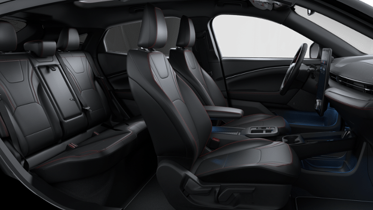 Check Out All These Options: Equipment Group 300A Standard Package (Heated/Ventilated ActiveX Bucket Seats, Radio: B&O Sound System by Bang and Olufsen, SiriusXM with 360L, SYNC 4A with Enhanced Voice Recognition, and Wheels: 19 Bright Machined-Face Aluminum), Panoramic Fixed-Glass Roof Package, Sport Appearance Package (Sport Pedals, Unique Front Fascia, and Wheels: 19 Monochromatic High Gloss Black-Painted), Technology Package (BlueCruise (equipment + 1 Year + 90-Day Plan) and Ford Co-Pilot360 Active 2.0), 10 Speakers, 4-Wheel Disc Brakes, ABS brakes, Air Conditioning, Alloy wheels, AM/FM radio: SiriusXM with 360L, Apple CarPlay/Android Auto, Auto High-beam Headlights, Auto-dimming Rear-View mirror, Automatic temperature control, Brake assist, Bumpers: body-color, Compass, Delay-off headlights, Drainable Frunk, Driver door bin, Driver vanity mirror, Dual front impact airbags, Dual front side impact airbags, Electronic Stability Control, Emergency communication system: 911 Assist, Exterior Parking Camera Rear, Four wheel independent suspension, Front anti-roll bar, Front Bucket Seats, Front Center Armrest, Front dual zone A/C, Front License Plate Bracket, Front reading lights, Fully automatic headlights, Heated door mirrors, Heated front seats, Heated steering wheel, Illuminated entry, Knee airbag, Low tire pressure warning, Memory seat, Mobile Power Cord (120V/240V), NACS Fast Charging Adapter, Navigation system: Connected Navigation, Occupant sensing airbag, Outside temperature display, Overhead airbag, Overhead console, Panic alarm, Passenger door bin, Passenger vanity mirror, Power door mirrors, Power driver seat, Power passenger seat, Power steering, Power windows, Radio data system, Rain sensing wipers, Rear anti-roll bar, Rear seat center armrest, Rear side impact airbag, Rear window defroster, Rear window wiper, Remote keyless entry, Security system, Speed control, Speed-sensing steering, Speed-Sensitive Wipers, Split folding rear seat, Spoiler, Steering wheel mounted audio controls, Telescoping steering wheel, Tilt steering wheel, Tire Inflator and Sealant Kit, Traction control, Trip computer, Turn signal indicator mirrors, Variably intermittent wipers, and Ventilated front seats.