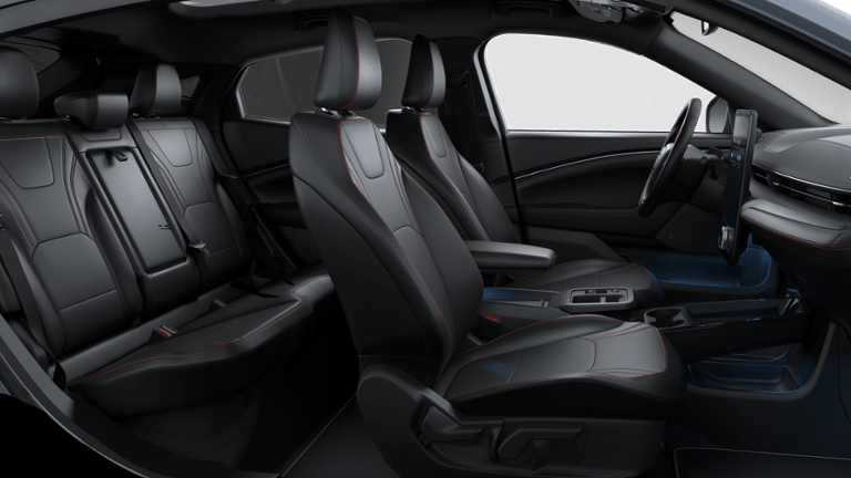 Check Out All These Options: Equipment Group 300A Standard Package (Heated/Ventilated ActiveX Bucket Seats, Radio: B&O Sound System by Bang and Olufsen, SiriusXM with 360L, SYNC 4A with Enhanced Voice Recognition, and Wheels: 19 Bright Machined-Face Aluminum), Ford Connectivity Package (one-Time Purchase - 7 Years) (Audio and Video Streaming and Connected Navigation), Panoramic Fixed-Glass Roof Package, Sport Appearance Package (Sport Pedals, Unique Front Fascia, and Wheels: 19 Monochromatic High Gloss Black-Painted), Technology Package (BlueCruise (equipment + 1 Year + 90-Day Plan) and Ford Co-Pilot360 Active 2.0), 10 Speakers, 4-Wheel Disc Brakes, ABS brakes, Air Conditioning, Alloy wheels, AM/FM radio: SiriusXM with 360L, Apple CarPlay/Android Auto, Auto High-beam Headlights, Auto-dimming Rear-View mirror, Automatic temperature control, Brake assist, Bumpers: body-color, Compass, Delay-off headlights, Drainable Frunk, Driver door bin, Driver vanity mirror, Dual front impact airbags, Dual front side impact airbags, Electronic Stability Control, Emergency communication system: 911 Assist, Exterior Parking Camera Rear, Four wheel independent suspension, Front anti-roll bar, Front Bucket Seats, Front Center Armrest, Front dual zone A/C, Front License Plate Bracket, Front reading lights, Fully automatic headlights, Heated door mirrors, Heated front seats, Heated steering wheel, Illuminated entry, Knee airbag, Low tire pressure warning, Memory seat, Mobile Power Cord (120V/240V), NACS Fast Charging Adapter, Navigation system: Connected Navigation, Occupant sensing airbag, Outside temperature display, Overhead airbag, Overhead console, Panic alarm, Passenger door bin, Passenger vanity mirror, Power door mirrors, Power driver seat, Power passenger seat, Power steering, Power windows, Radio data system, Rain sensing wipers, Rear anti-roll bar, Rear seat center armrest, Rear side impact airbag, Rear window defroster, Rear window wiper, Remote keyless entry, Security system, Speed control, Speed-sensing steering, Speed-Sensitive Wipers, Split folding rear seat, Spoiler, Steering wheel mounted audio controls, Telescoping steering wheel, Tilt steering wheel, Tire Inflator and Sealant Kit, Traction control, Trip computer, Turn signal indicator mirrors, Variably intermittent wipers, and Ventilated front seats.
