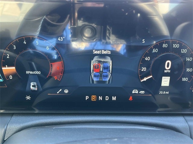 Check Out All These Options: Anti-Theft Package (Active Anti-Theft System, Locking Center Console, and Wheel Locking Kit), Dark Horse Appearance Package (Notorious Blue Painted Unique Brake Calipers, Painted Black Roof, and Unique Hood Graphic), Equipment Group 700A Deluxe Package (Aluminum Foot Pedals, AM/FM Stereo, Approach Detection, B&O Sound System by Bang & Olufsen, Cloth/Vinyl Climate-Controlled Bucket Seats, HD Radio, and SYNC 4), 12 Speakers, 4-Wheel Disc Brakes, ABS brakes, Adaptive suspension, Air Conditioning, Alloy wheels, AM/FM radio: SiriusXM with 360L, Auto High-beam Headlights, Auto-dimming Rear-View mirror, Automatic temperature control, Brake assist, Bumpers: body-color, Cloth/Vinyl Heated Bucket Seats, Compass, Delay-off headlights, Driver door bin, Driver vanity mirror, Dual front impact airbags, Dual front side impact airbags, Electronic Stability Control, Emergency communication system: 911 Assist, Exterior Parking Camera Rear, Four wheel independent suspension, Front anti-roll bar, Front Bucket Seats, Front Center Armrest, Front dual zone A/C, Front reading lights, Fully automatic headlights, Heated front seats, Heated steering wheel, Illuminated entry, Knee airbag, Low tire pressure warning, Navigation system: Connected Navigation, Occupant sensing airbag, Outside temperature display, Overhead airbag, Overhead console, Panic alarm, Passenger door bin, Passenger vanity mirror, Power door mirrors, Power driver seat, Power passenger seat, Power steering, Power windows, Radio data system, Rain sensing wipers, Rear anti-roll bar, Rear Parking Sensors, Rear window defroster, Remote keyless entry, Speed control, Speed-sensing steering, Speed-Sensitive Wipers, Split folding rear seat, Spoiler, Sport steering wheel, Steering wheel mounted audio controls, Tachometer, Telescoping steering wheel, Tilt steering wheel, Traction control, Trip computer, Variably intermittent wipers, and Voltmeter.