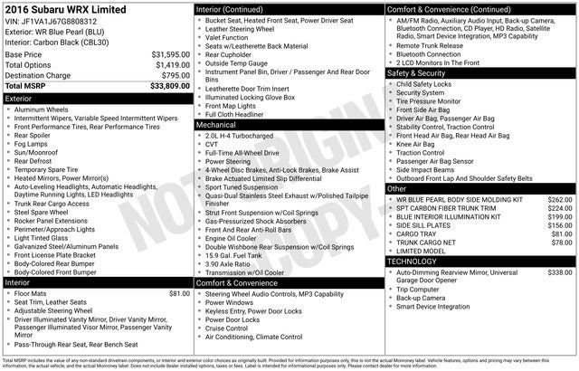 2016 Subaru WRX Limited