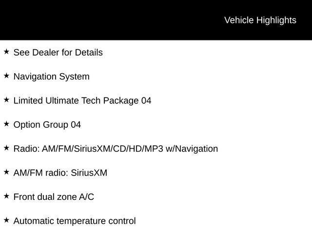 See Dealer for Details, AWD, Black Leather, 19 x 7.5J Aluminum Alloy Wheels, Active Cruise Control, AM/FM radio: SiriusXM, Automatic Emergency Braking, Automatic temperature control, Exterior Parking Camera Rear, Front dual zone A/C, Garage door transmitter: HomeLink, Heated & Ventilated Multi-Adjustable Bucket Seats, Heated front seats, Heated rear seats, Heated steering wheel, Lane Departure Warning System, Limited Ultimate Tech Package 04, Memory seat, Navigation System, Option Group 04, Power Liftgate, Power moonroof, Radio: AM/FM/SiriusXM/CD/HD/MP3 w/Navigation, Ventilated front seats.