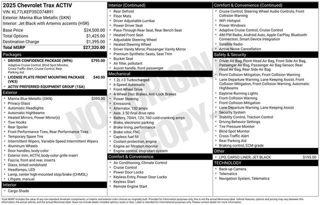 Experience the exceptional value and uncompromising quality of the 2025 Chevrolet Trax ACTIV. Visit our showroom today and let us demonstrate how this versatile crossover can enhance your driving lifestyle. We're confident you'll be impressed by its blend of style, technology, and performance.