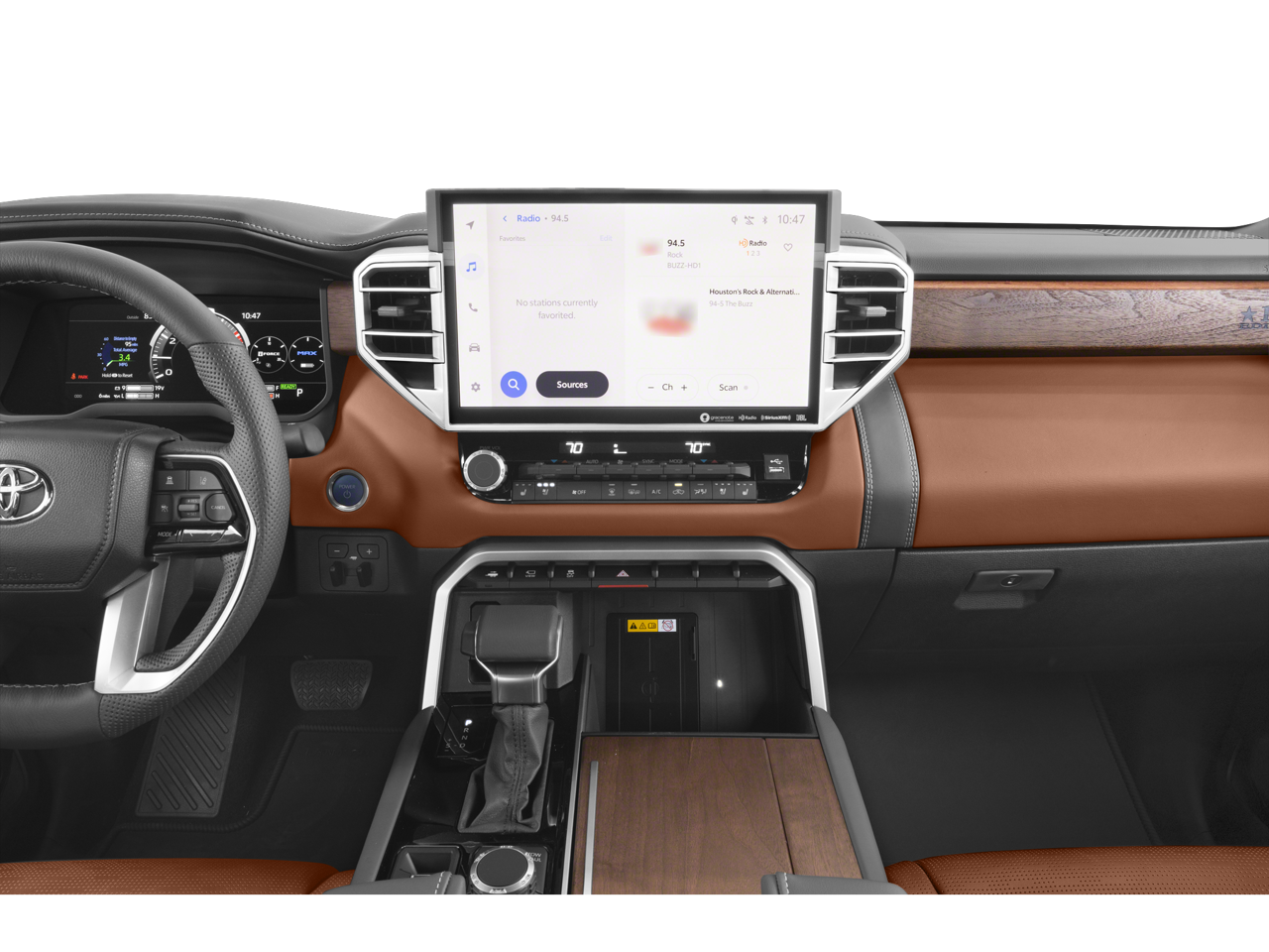 Elevate your commute with the Tundra Hybrid's advanced technology features, including Apple CarPlay/Android Auto, a Panoramic View Monitor, and the innovative 10 Color Head-Up Display. Stay connected and in control, with seamless integration of your digital world.